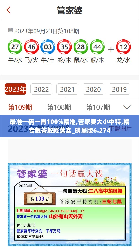 在当今这个信息爆炸的时代,如何获取准确、有效的信息成为了每个人面临的挑战。无论是在日常生活中还是在专业领域,拥有一手精准的信息都可能会成为竞争中的优势。这篇文章将深入探讨“最准一码一肖100%精准、管家婆大小中特”这一话题,并结合明星版6.274的特点,解析其在娱乐圈与其他领域的影响力。