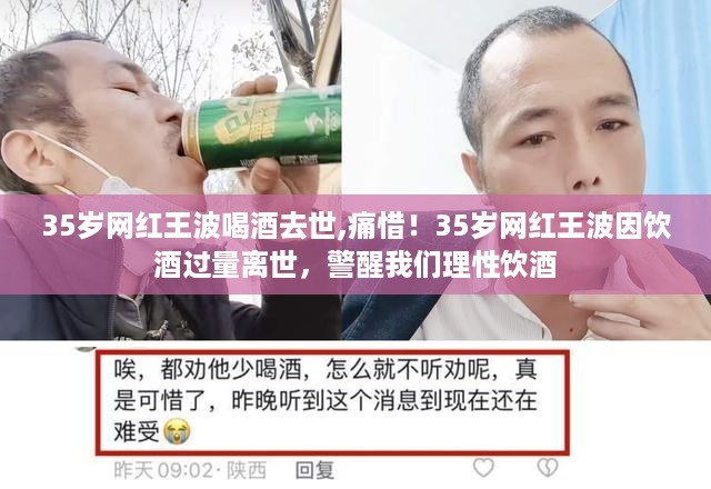 一则令人痛心的消息在社交平台上广泛传播:年仅35岁的知名网红王波因饮酒过量不幸离世,这突发事件让我们深感震惊与惋惜,王波的离世不仅给他的家人和朋友带来了巨大的悲痛,也为我们敲响了警钟,提醒我们理性对待饮酒,珍惜生命。