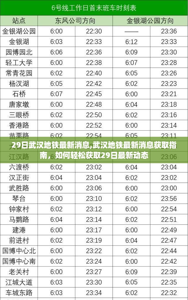本指南旨在帮助大家轻松获取关于武汉地铁的最新消息,特别是针对即将到来的特定日期(如本月29日)的动态,无论您是武汉本地的居民、外地游客,还是对武汉地铁发展感兴趣的朋友,都能通过本指南快速获取所需信息,本指南适合各层次用户阅读。