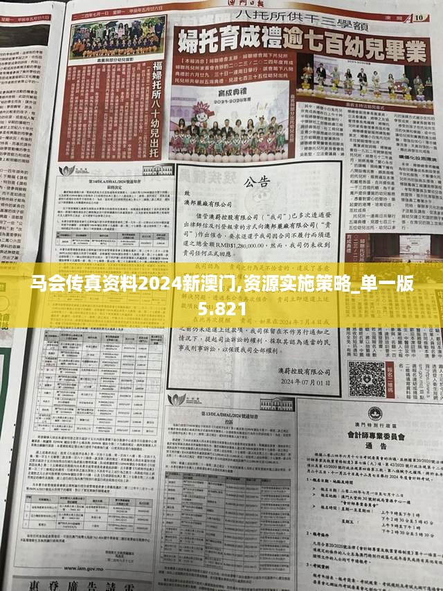 在当今快速发展的时代,信息的获取和利用变得愈加重要,特别是在涉及到新澳门的经济和社会发展中。为此,本文将详细探讨“马会传真资料2024新澳门,资源实施策略_单一版5.821”这一主题,旨在为关注新澳门发展的读者提供有价值的信息和见解,这不仅对于投资者和政策制定者至关重要,同时也是关注经济动态的普通公众所需要的。