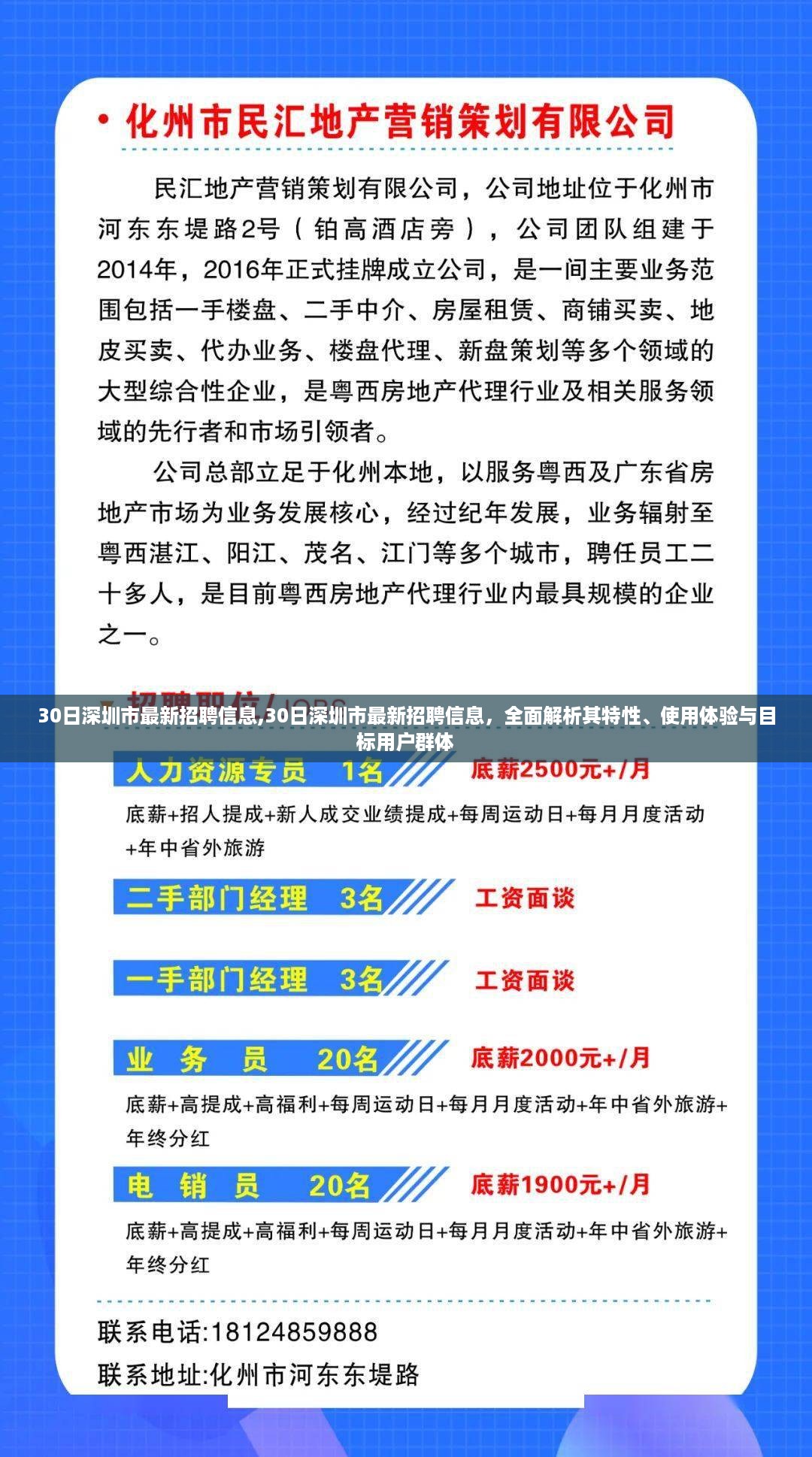 随着信息技术的飞速发展,获取和筛选招聘信息已成为求职者日常生活中不可或缺的任务之一,在竞争激烈的招聘领域中,“30日深圳市最新招聘信息”以其独特的服务特性、精准的目标用户定位以及实时更新的招聘信息,逐渐赢得了市场的关注和求职者的青睐,本文将对该服务进行全面而详尽的评测介绍,包括其特性、使用体验、与竞品的对比、优点和缺点以及目标用户群体分析。