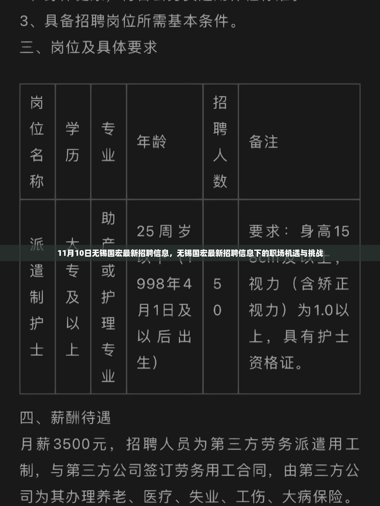 随着经济的复苏和产业的转型升级,无锡国宏的最新招聘信息引起了广泛关注,对于求职者而言,这不仅是一次寻找工作的机会,更是观察职场发展趋势的窗口,本文将围绕这一招聘信息,从不同角度探讨其中的机遇与挑战,以期对求职者有所启示。