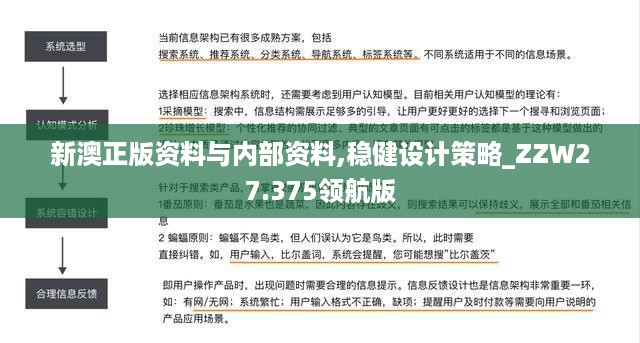 新澳正版资料与内部资料的稳健设计策略的实施,是我们提升设计水平与市场竞争力的重要举措。通过建立规范化、标准化的工作流程,我们将迎接更多机遇与挑战。希望各单位齐心协力,共同落实本策略,实现设计领域的新突破。
