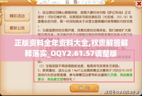 在当前信息化高速发展的背景下,各类资源尤其是资料的正规化和系统化显得尤为重要。“正版资料全年资料大全”计划旨在为社会各界提供一个准确、可靠的信息平台,使得大家可以轻松获取所需的权威资料。同时,“权贵解答解释落实_OQY2.61.57调整版”则为各类资料的理解和应用提供了详细的指导,确保信息能够被有效解读,使得信息不仅仅停留在表面,而能深入应用于实践中。