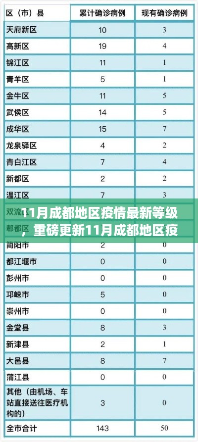亲爱的成都小伙伴们,随着季节的转换,我们迎来了金秋的十一月,在这个美好的时刻,我们也不能忽视疫情的最新动态,就让我带大家了解11月成都地区的疫情最新等级,共同守护我们的家园。