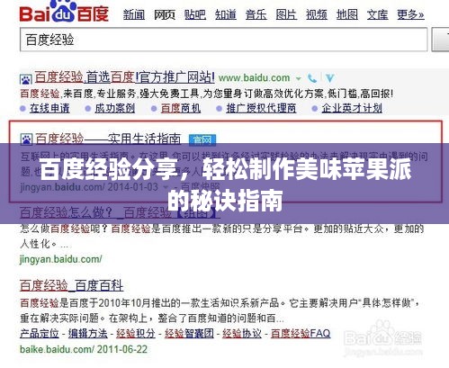 在寻找美食制作的灵感时,我们常常会借助搜索引擎的力量,我们就来一起探索如何制作美味的苹果派,通过百度经验分享,轻松掌握制作苹果派的诀窍,让你在家也能享受美味的烘焙时光。