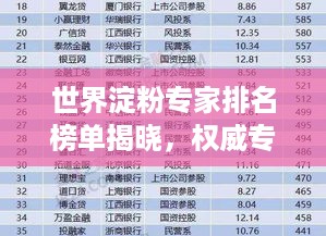 转载请注明来自无忧安证,本文标题:《世界淀粉专家排名榜单揭晓,权威专家悉数登场,引领淀粉产业前行》