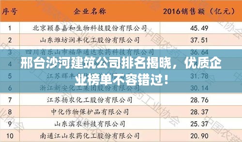 邢台沙河地区作为经济不断发展的城市,建筑业在其中扮演着重要的角色,本文将探讨邢台沙河地区的建筑公司排名,为您揭示这一领域的佼佼者。