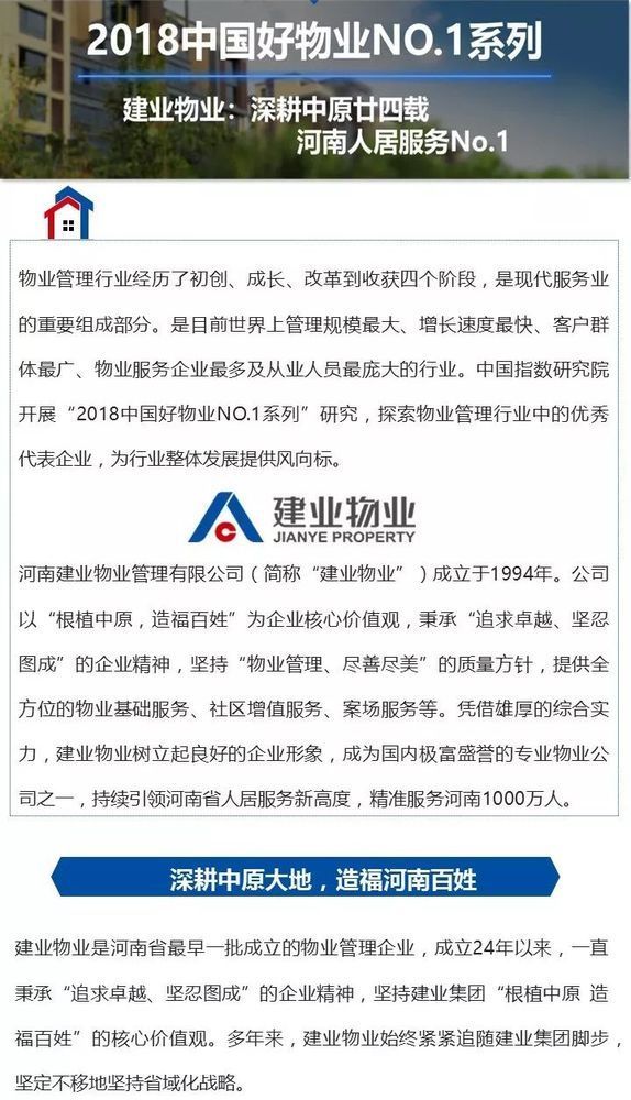 亲爱的业主们、合作伙伴们以及对建业物业持续关注的朋友们: